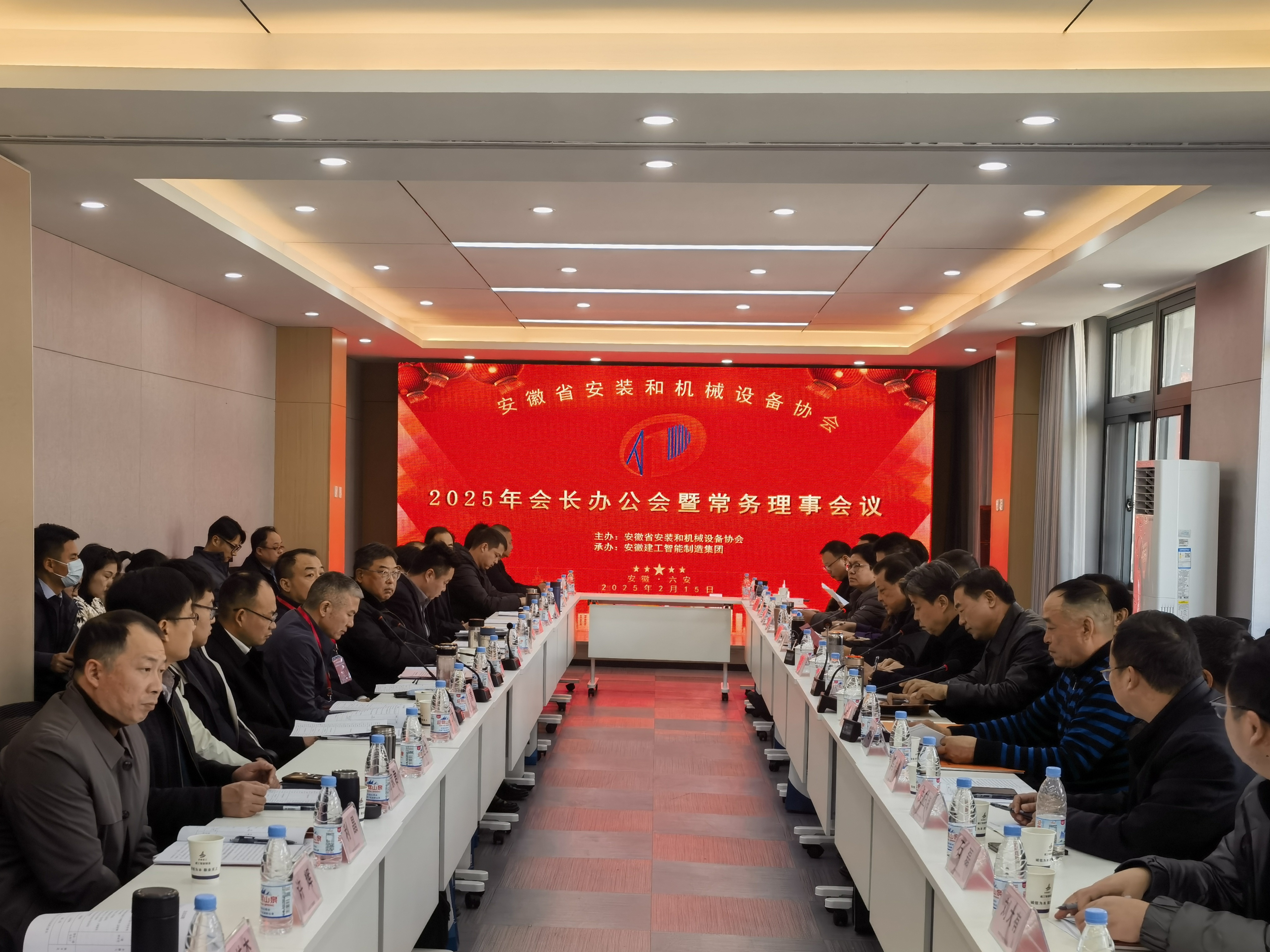 2月15日-16日,協(xié)會2025年會長辦公會暨常務(wù)理事會議在安徽建工智能制造集團(tuán)有限公司六安公司生產(chǎn)基地順利召開。會長、副會長、秘書長、黨建指導(dǎo)員、監(jiān)事長、副秘書長、行業(yè)主管部門相關(guān)負(fù)責(zé)人、常務(wù)理事單位代表60余人參會。特邀安徽省住房和城鄉(xiāng)建設(shè)廳副總工程師、一級調(diào)研員單龍和安徽省審計(jì)廳原一級巡視員、安徽省社會組織總會會長賈寶明到會指導(dǎo)并講話。會議由副會長李鵬飛主持。